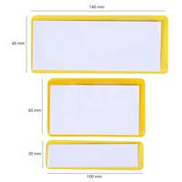 - Parte anteriore in plastica trasparente e parte posteriore magnetica o adesiva.