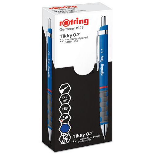 | Descrizione | Portamine Tikky HB 0,7 mm, Corpo, colore: Blu, Punta Ø: 0.7 mm, Gomma incorporata: si, Senza VOC: si |