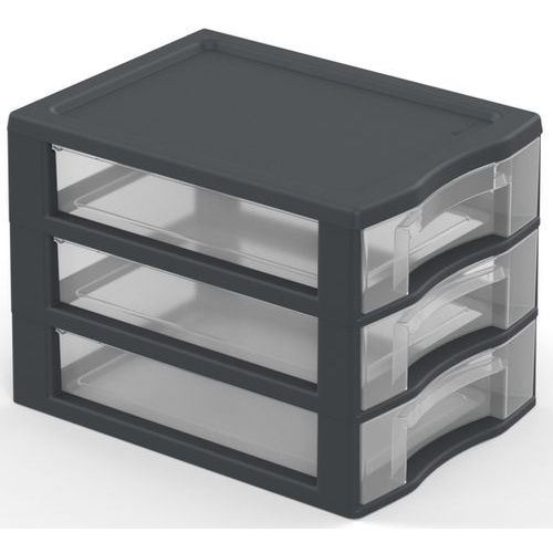 40% di plastica riciclata. Facilmente sovrapponibile. Cassetti con finecorsa anti-ritorno. Parte superiore incavata per riporre piccoli oggetti. Impugnatura ergonomica su ogni cassetto. Cassetto portaoggetti XL: 38,5 x37 x 14 cm.