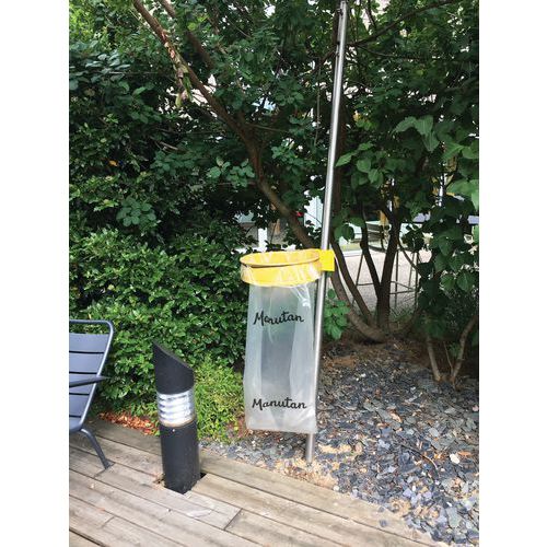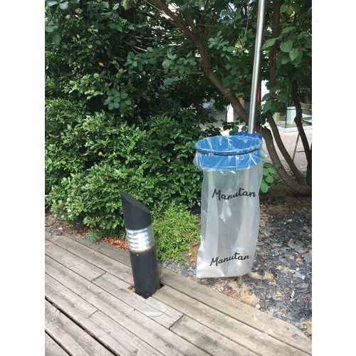 Supporto in materiale resistente alla corrosione. Il sacco è fissato dalla cinghia elastica. Installazione e pulizia agevoli. Possibilità di fissaggio a parete o su paletto.