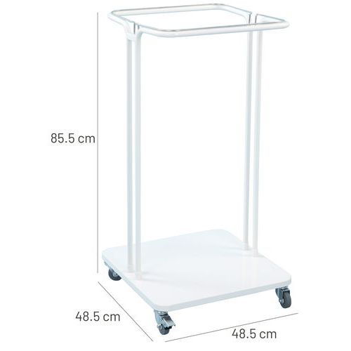 Portasacco mobile con chiusura silenziosa del coperchio. Realizzato per ospedali, cucine professionali, uffici, ecc. Telaio metallico molto stabile dotato di ruote silenziose anti-macchia con cuscinetti a sfere (2 ruote con freni). Dotato di un fissaggio del sacco intelligente che garantisce un posizionamento perfetto del sacco e una sostituzione semplice. Superficie liscia per una rapida pulizia. Più unità insieme con sacchi di colori diversi possono costituire una stazione per la raccolta differenziata ben visibile.