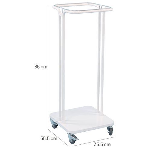 Portasacco mobile con chiusura silenziosa del coperchio. Realizzato per ospedali, cucine professionali, uffici, ecc. Telaio metallico molto stabile dotato di ruote silenziose anti-macchia con cuscinetti a sfere (2 ruote con freni). Dotato di un fissaggio del sacco intelligente che garantisce un posizionamento perfetto del sacco e una sostituzione semplice. Superficie liscia per una rapida pulizia. Più unità insieme con sacchi di colori diversi possono costituire una stazione per la raccolta differenziata ben visibile.