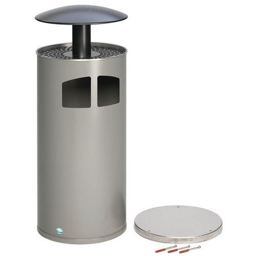 - Copertura con disco fisso in lamiera d’acciaio perforato per i mozziconi di sigaretta.