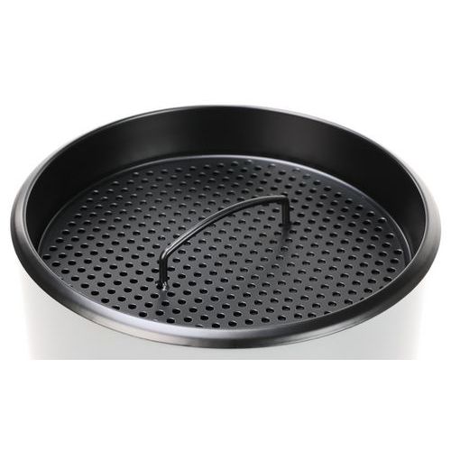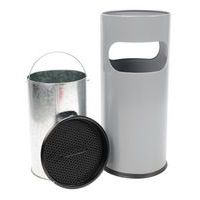 Posacenere-cestino ignifugo rotondo con contenitore interno in metallo. Dotato di un setaccio e di una piastra nera. Griglia per un facile spegnimento dei mozziconi di sigaretta. Maniglia sulla parte alta per agevolare lo svuotamento.