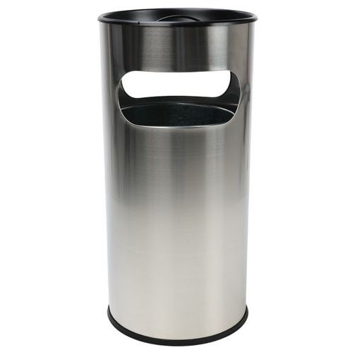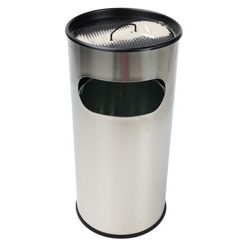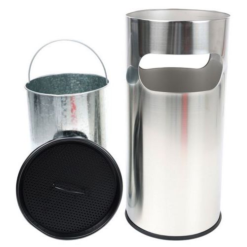 - Posacenere-cestino ignifugo in inox rotondo con contenitore interno in metallo.