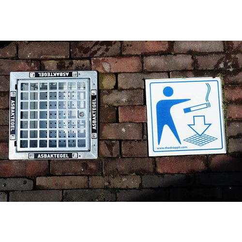 Piastrella-posacenere in robusto acciaio galvanizzato.