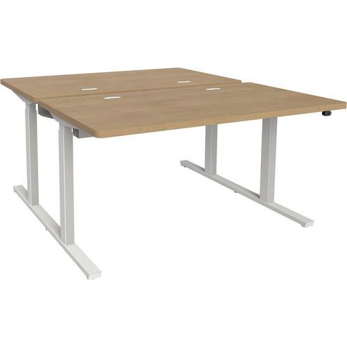 Scrivania bench per 2 collaboratori, uno di fronte all'altro. Questa disposizione favorisce il lavoro in team e ottimizza lo spazio nell'ambiente di lavoro. Scrivanie regolabili in altezza completamente indipendenti. Compatibili con la gamma di pareti di separazione Adema