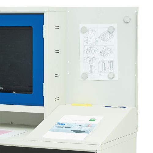 Con piano di appoggio per scrittura o consultazione di documenti e fondo magnetico per promemoria.
