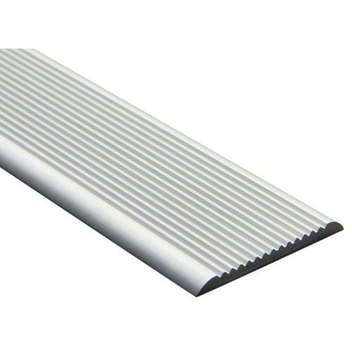 Il profilo gradino piatto in alluminio striato è resistente al passaggio intensivo e allo scivolamento su pavimenti umidi, raccomandato per tutti i tipi di pavimenti, in particolare per i gradini dei luoghi aperti al pubblico.