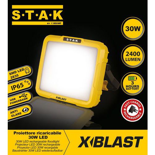 | Descrizione | Proiettore X-BLAST 30W a led ricaricabile 2400 lm, Flusso luminoso: 2400 lm, Potenza: 30 W |