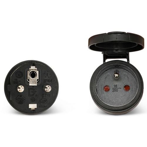 - Grazie al tappo a tenuta robusto e all'indice di protezione IP44, il cavo di alimentazione è perfetto per l'uso esterno o in ambienti umidi.