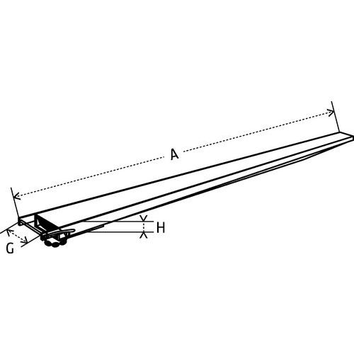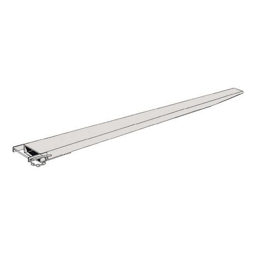 Installazione rapida tramite presa diretta con il carrello elevatore. Ideale per carichi lunghi. Prolunghe parzialmente chiuse nella parte anteriore e posteriore per una migliore rigidità. Blocco delle prolunghe dietro il tallone delle forche per una sicurezza ottimale. Il carico massimo è inteso come peso ripartito in modo uniforme lungo la prolunga.