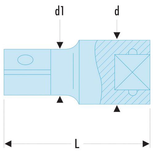 | Dati tecnici | d [mm]: 23, d1 [mm]: 16,5, L [mm]: 75, attacco quadrato []: 1/2, [g]: 130, |