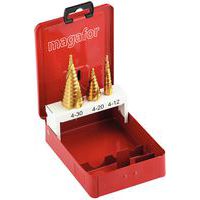 - Cassetta da 19 punte standard a codolo cilindrico laminate in acciaio rapido HSS Ø 1 a 1 mm. Buona durata e resistenza all'usura. Profilo robusto, angolo della punta a 118° e angolo d'elica a 3°. Affilatura e scanalature normali. Tolleranza h8. Trattamento superficie a vapore, ottenuto tramite laminatura a caldo, per offrire un certo grado di elasticità.