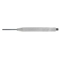 Questo punzone ha un'asta scorrevole all'interno di un manicotto di guida che evita qualsiasi deformazione anche di piccole dimensioni. Durezza dell'asta da 52 a 57 HRc a seconda della dimensione. Presentazione: corpo zincato, stelo brunito.