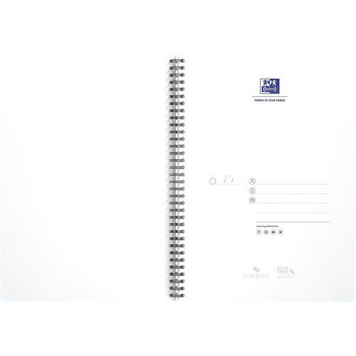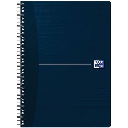 Quaderno Oxford Office Essentials A4 a righe 7 mm 180. pagine rilegatura integrale copertina in carta colorata. Formato A4 ‐ Larghezza: 21 cm x Altezza: 29,7 cm. Con righe distanziate 7 mm con intestazione e doppio margine. Copertina morbida opaca in cartone con pellicola. Rilegatura integrale nera. 180 pagine ‐ Qualità Optik Paper, carta 90 g satinata extra bianca. Un righello segnapagina rimovibile è fornito con il quaderno. Frontespizio all'inizio del quaderno con zona di scrittura stampata. Quaderno certificato Ecolabel EU Colore della copertina: blu autentico, verde bosco, viola, blu.