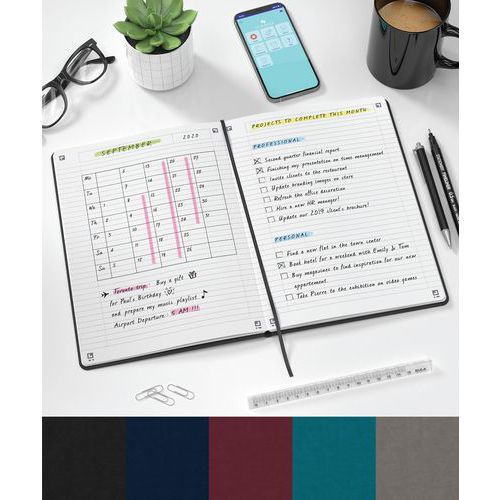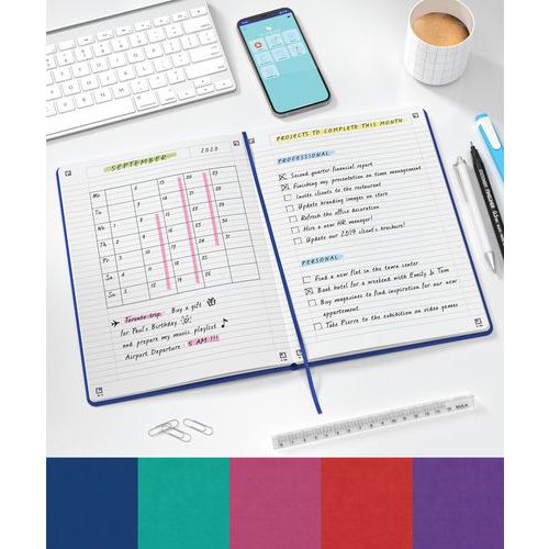 Quaderno Oxford Signature rilegato con elastico di chiusura piatto e in tinta per la massima sicurezza dei contenuti. Con angoli arrotondati per evitare di sgualcire le pagine. Nastro segna pagina in tinta con il colore del quaderno per individuare rapidamente gli appunti.
