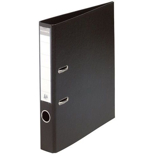 Raccoglitore a leva export in PVC A4, retro da 50 mm. Articolo consegnato piatto, con la componente meccanica a parte nella scatola per ottimizzare i costi di trasporto e di stoccaggio. Occhiello per mantenere e afferrare correttamente l'articolo. Porta-etichette di grandi dimensioni ed etichetta utilizzabile fronte/retro. Copertina, retro e guardia rivestiti in PVC.