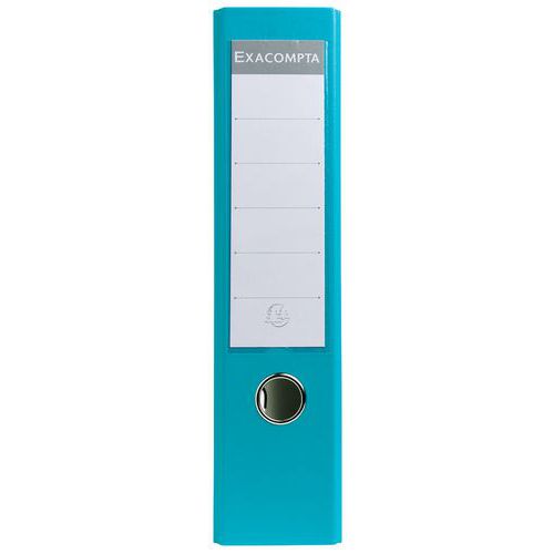 Raccoglitore a leva in polipropilene retro da 80 mm Occhiello per afferrare correttamente l'articolo e base con rinforzi metallici per evitare l'usura prematura in posizione verticale. Porta-etichette di grandi dimensioni ed etichetta utilizzabile fronte/retro Occhiello per mantenere e afferrare correttamente l'articolo. Base e retro foderati in polipropilene, pagina di guardia di carta.