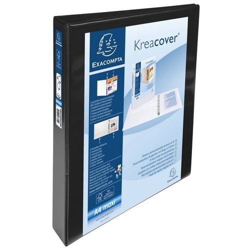Raccoglitore rigido personalizzabile 2 buste KreaCover - 4 anelli a D da 30 mm A4 maxi. Kreacover è una soluzione veloce e di alta qualità per ottenere un fascicolo di documenti personalizzato e facilmente modulare. Copertina rigida plastificata e robusta, con tasca per la personalizzazione sul fronte e sul retro del raccoglitore. Il raccoglitore possiede inoltre 2 tasche interne per riporre fogli volanti. Avendo un retro da 44 mm, ed essendo dotato di meccanismo ad anello a D che consente di archiviare meglio i documenti, questo raccoglitore contiene fino a 275 fogli. Formato A4 maxi: accoglie buste, tasche, intercalari, fogli perforati senza che nulla sporga fuori. Copertine, etichette, ecc. sono facilmente personalizzabili utilizzando l'app Kreaman disponibile sul sito exacompta.