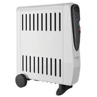 Radiatore a bagno d'olio Tuareg, mobile a calore medio. Due tecnologie combinate: a irraggiamento e convezione. Umidificatore integrato e livello dell'acqua visibile per evitare di seccare l'aria. Lato anteriore termoconduttivo per una diffusione estesa del calore. Base con rotelle e maniglia per il trasporto. Avvolgicavo integrato.