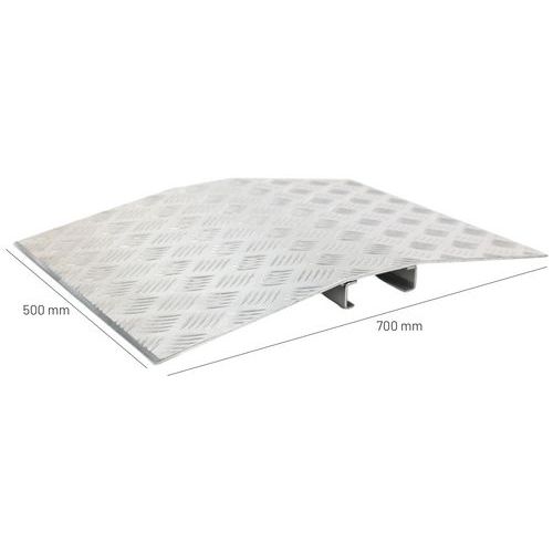 | Descrizione | Rampa di accesso, Materiale: Alluminio, Portata: 300 kg, Larghezza totale: 500 mm, Lunghezza totale: 700 mm |