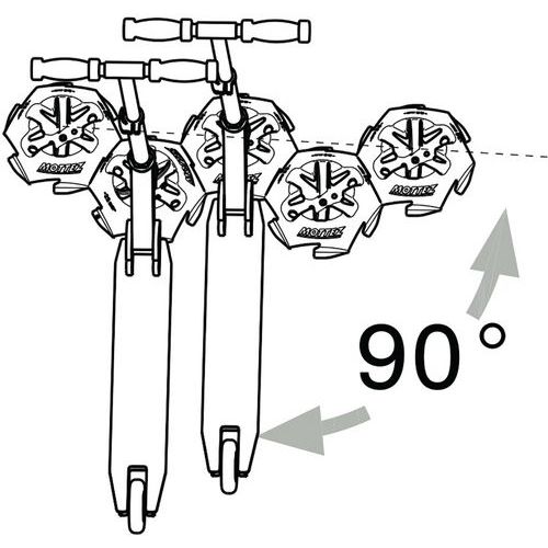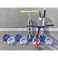 Rastrelliera per monopattini al suolo ingegnosa compatibile con qualsiasi modello.