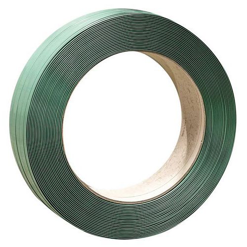 Le reggiature in poliestere (PET), pensate per la pallettizzazione e l'unione di carichi da medi a lordi, possono essere applicate con utensili manuali o attrezzature idonee. Più leggere di circa l'80% rispetto alla reggiatura in acciaio e privo di bordi vivi, questa reggiatura è più facile da maneggiare rispetto alla reggiatura in acciaio.