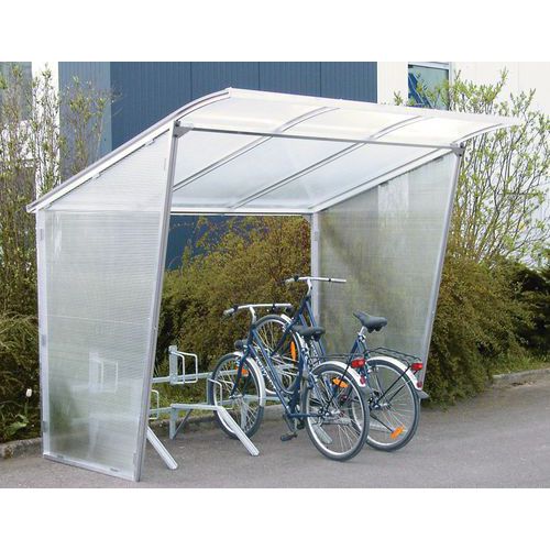 - Riparo per biciclette con pareti in policarbonato semiopache.