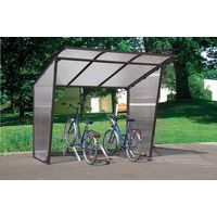 Riparo per biciclette con pareti in policarbonato semiopache.
