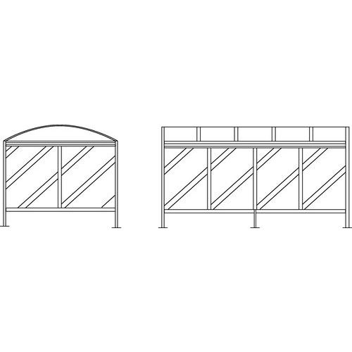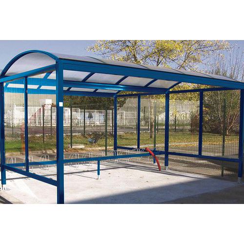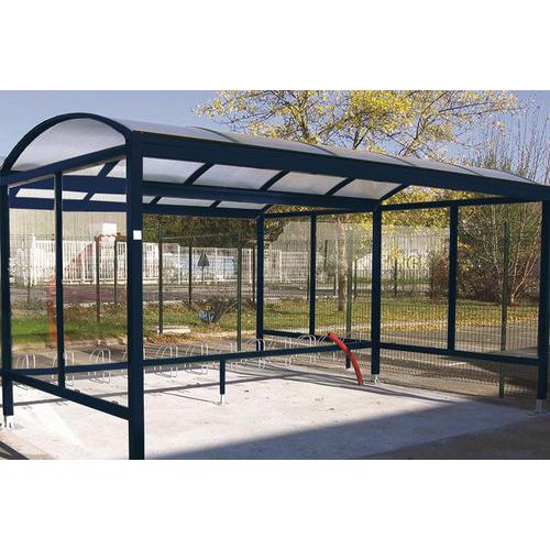 Riparo modulare per una protezione ottimale. Raccolta dell'acqua piovana nei paletti. Vernice in poliestere resistente ai raggi UV. Riparo per biciclette con piedi regolabili su piastra. Struttura modulare che consente di realizzare qualsiasi configurazione (vedi elemento successivo). Garanzia di 5 anni.