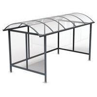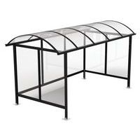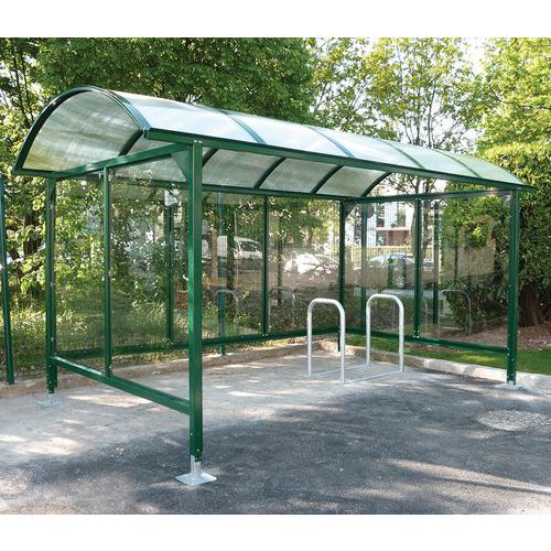 - Riparo per biciclette arrotondato, con modulo di partenza a 6 posti; la tettoia è realizzata con trattamento anti UV;