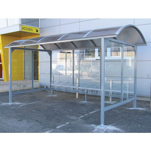 - Riparo per biciclette con pareti in policarbonato semiopache.