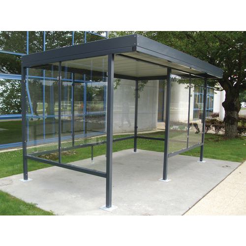 Riparo per fumatori robusto con tettoia piatta.