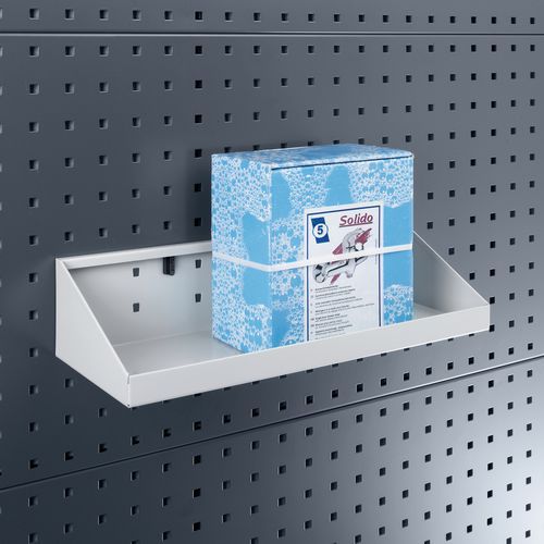 Pratico ripiano per i vostri componenti da officina. Modello robusto spesso 6 mm. Fissate il supporto in un attimo con le clip di sicurezza in plastica.