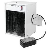 Riscaldatore ad aria pulsata sospeso elettrico. Semplice da installare. Regolazione automatica della temperatura. Dotato di griglie di protezione su soffiaggio e aspirazione. Scocca metallica rivestita di vernice epossidica, di resistenze blindate e componenti a comprovata affidabilità.