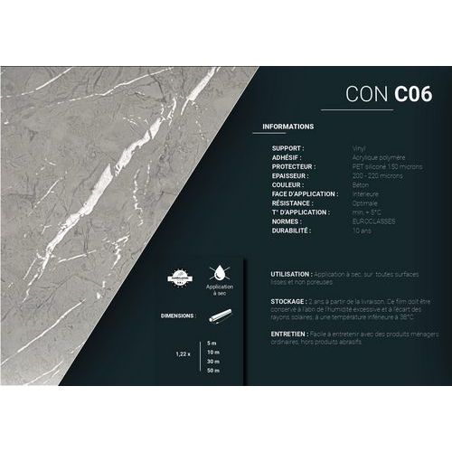 | Descrizione | Rivestimento adesivo in cemento CON C06 grigio scuro, Tipo di film per vetro: Film decorativo |