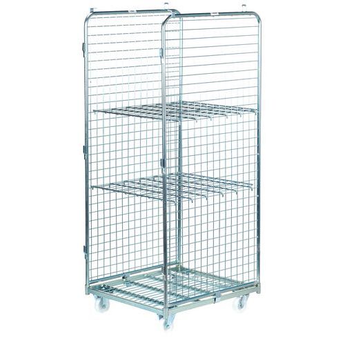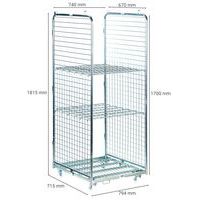 | Descrizione | Roll-container a 2 lati e 2 ripiani, Portata: 400 kg, Altezza totale: 1815 mm, Lunghezza totale: 794 mm |