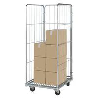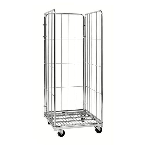 Roll-container in acciaio a 3 lati a griglia, ideale per lo spostamento di merci ingombranti. Grande maneggevolezza, dotato di 2 ruote fisse e 2 girevoli con battistrada in polipropilene. Struttura in acciaio zincato elettrolitico e base ultra robusta con rinforzi negli angoli. Ideale per lavanderie, raccolta dei rifiuti, movimentazioni in interni, punti vendita o per il trasporto. Ideale per raccogliere gli imballaggi in eccesso