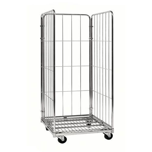 Roll-container in acciaio a 3 lati a griglia, ideale per lo spostamento di merci ingombranti. Grande maneggevolezza, dotato di 2 ruote fisse e 2 girevoli con battistrada in polipropilene. Struttura in acciaio zincato elettrolitico e base ultra robusta con rinforzi negli angoli. Ideale per lavanderie, raccolta dei rifiuti, movimentazioni in interni, punti vendita o per il trasporto. Ideale per raccogliere gli imballaggi in eccesso