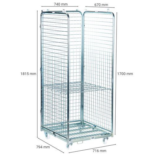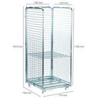 | Descrizione | Roll-container in acciaio 3 lati e 1 ripiano, Portata: 400 kg, Altezza totale: 1815 mm |