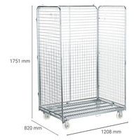 | Descrizione | Roll-container maxi a 3 lati, Portata: 600 kg, Altezza totale: 1751 mm, Lunghezza totale: 1208 mm |