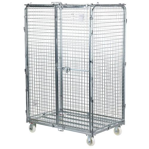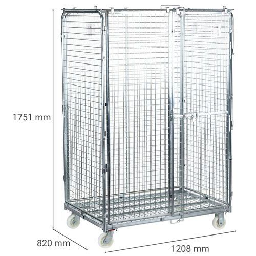 | Descrizione | Roll-container maxi di sicurezza, Portata: 600 kg, Altezza totale: 1751 mm, Lunghezza totale: 1208 mm |