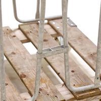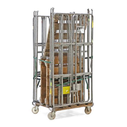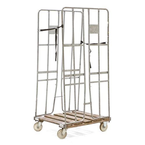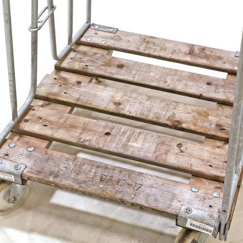 Roll-container ricondizionato antifurto. Ruote che offrono un'eccellente aderenza su diversi tipi di pavimenti. Base in legno. Ruote anteriori: 2 ruote girevoli in nylon, 125 mm. Ruote posteriori: 2 ruote fisse in nylon, 125 mm.