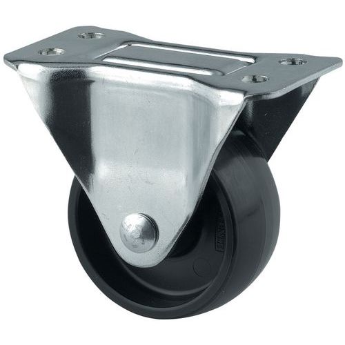 | Descrizione | Rotella con piastrina in polipropilene e montatura in acciaio, Carico max.: 120 kg, Ø: 65 mm |