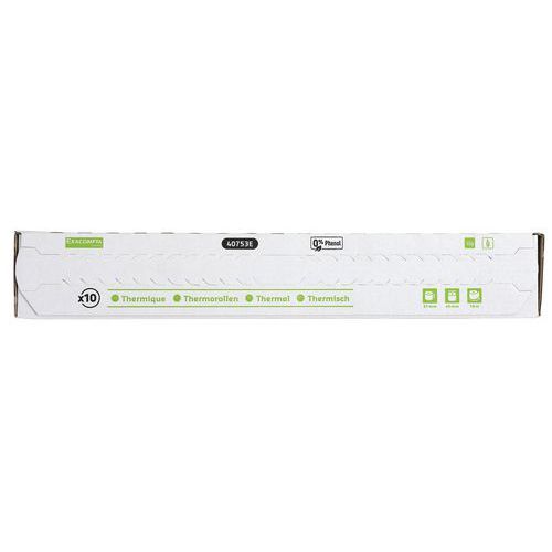 | Descrizione | Bobina per scontrini di carta di credito 1 piega termica 55g/m2, Tipo: Rotoli per scontrini carta |