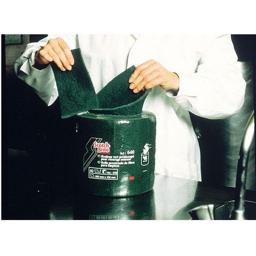 | Descrizione | Rotolo di abrasivo Scotch-Brite, Colore: Verde, Larghezza: 10 cm, Lunghezza: 16.5 cm, Tipo: Tampone |