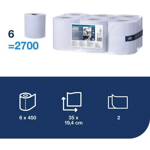 | Descrizione | Rotolo di asciugatutto a estrazione centrale Tork, Colore: Blu, Tipo: Sistema M2, N. di tele: 2 |