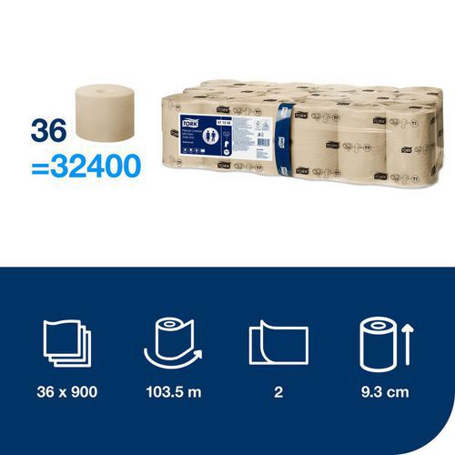 | Descrizione | Rotolo di carta igienica, N. di tele: 2, Lunghezza rotolo: 103.5 mm, Colore: Beige, N. di formati/rotolo: 900 |