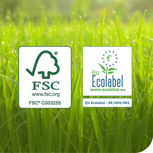 Prodotto certificato Ecolabel UE, garantisce che il prodotto è stato realizzato con un basso impatto ambientale per l'intero ciclo di vita (durata, consumi energetici e idrici, smaltimento dei rifiuti, impiego di sostanze chimiche, ecc.) conformemente alle specifiche riportate sull'etichetta.
